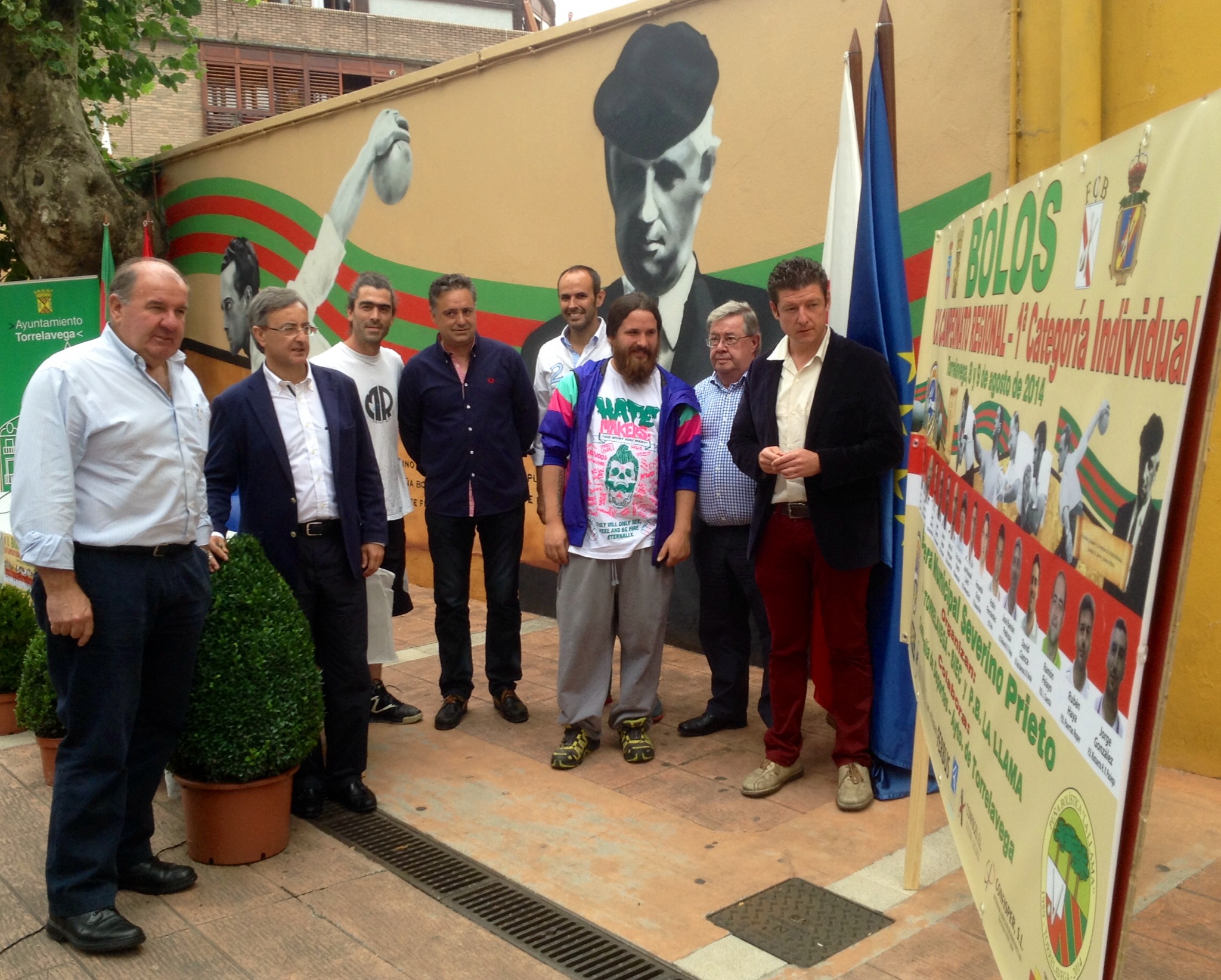El exterior de la bolera Carmelo Sierra, en pleno centro de Torrelavega, ha sido el lugar elegido para la presentación de dos eventos en el que los bolos son los protagonistas: el LXXIV Campeonato Regional de Bolos de 1ª Categoría que después de siete años regresa a Torrelavega, y el mural sobre la historia de la Peña Bolística que han realizado los artistas locales Daniel Revenga e Iván Calvo.