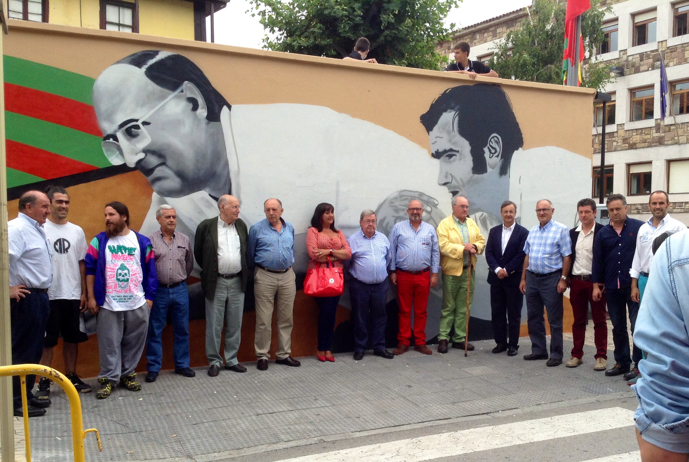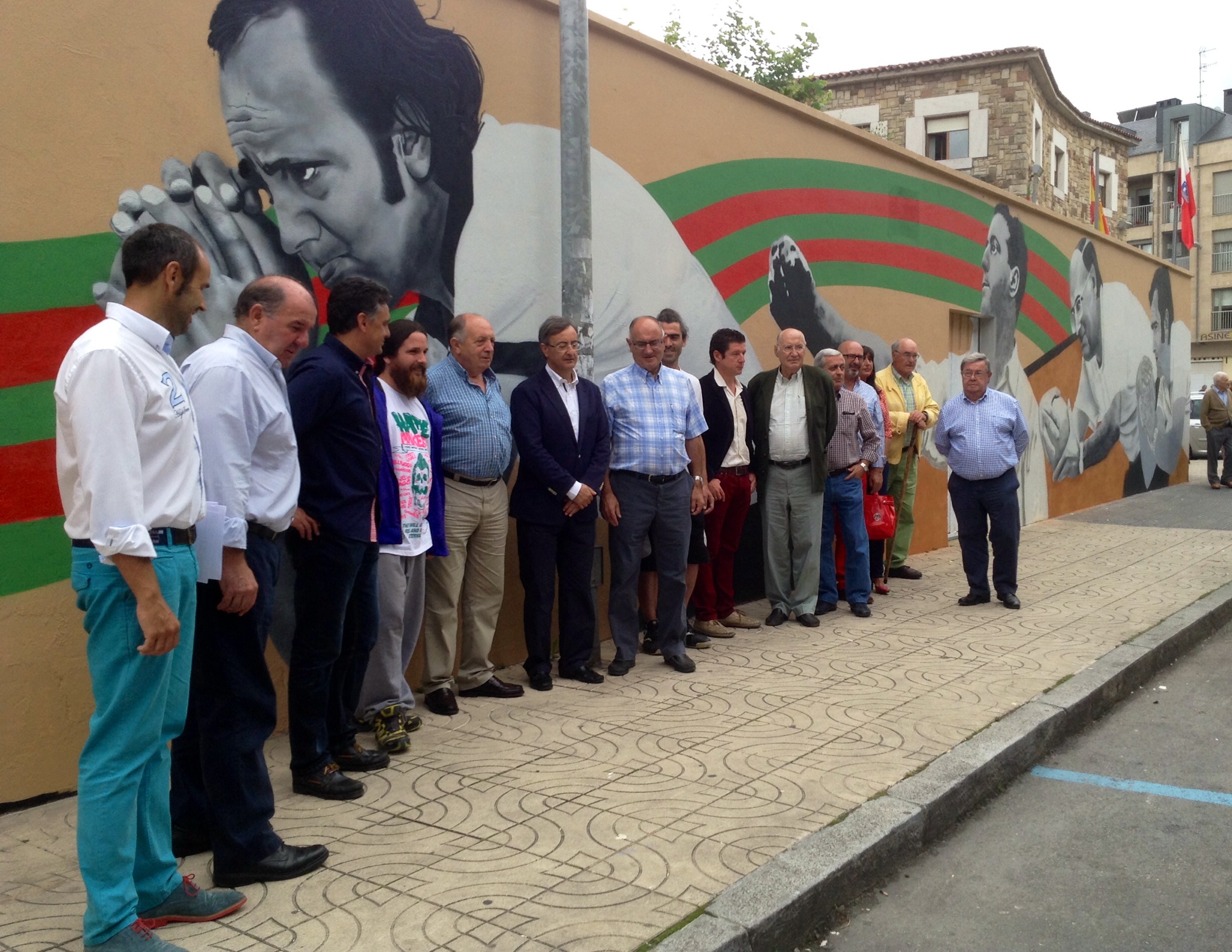 Tras la presentación del Campeonato Regional, con el fondo de Carmelo Sierra y Severino Prieto, tuvo lugar la inauguración del mural realizado por los artistas locales Daniel Revenga e Iván Calvo en el que se plasma parte de la historia de los bolos de la capital del Besaya con un recuerdo especial a algunos de sus ‘jugadores legendarios y personajes emblemáticos’ en un lugar también ‘emblemático’ como es el exterior de la bolera Carmelo Sierra y sede de la peña decana de Cantabria, la Peña Bolística Torrelavega.